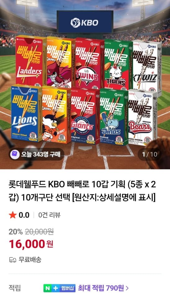 [네이버]롯데웰푸드 KBO 빼빼로 10갑 기획 + 쿨링부채 (16,000원/무료)