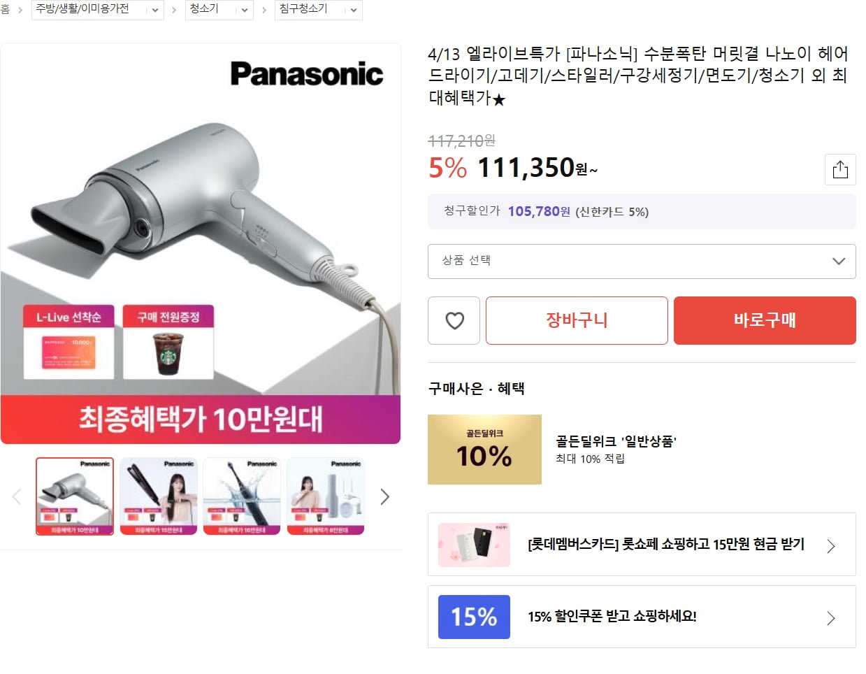 [롯데홈쇼핑]파나소닉 나노이 헤어드라이어 EH-NA7M (105,780원/무료)