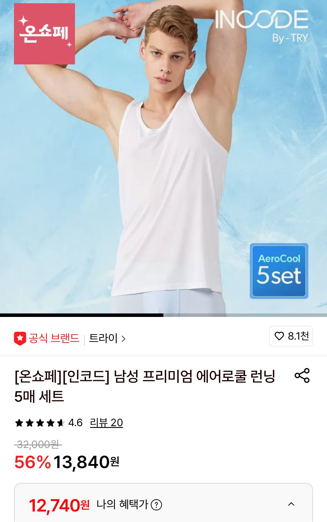 [롯데온]트라이 에어로쿨 런닝 5매세트 (12,740원/무료)