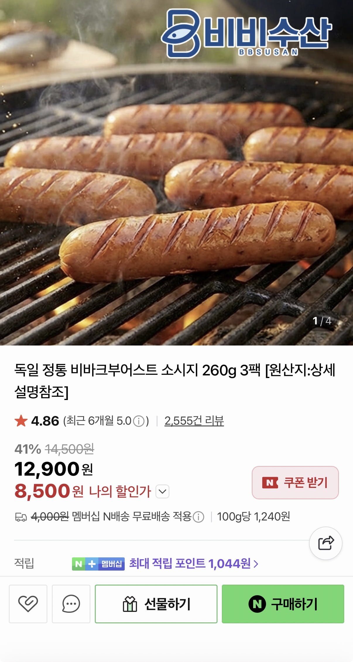 [네이버]독일 정통 비바크부어스트 소시지 260g3팩 (8,500원/네멤무배)