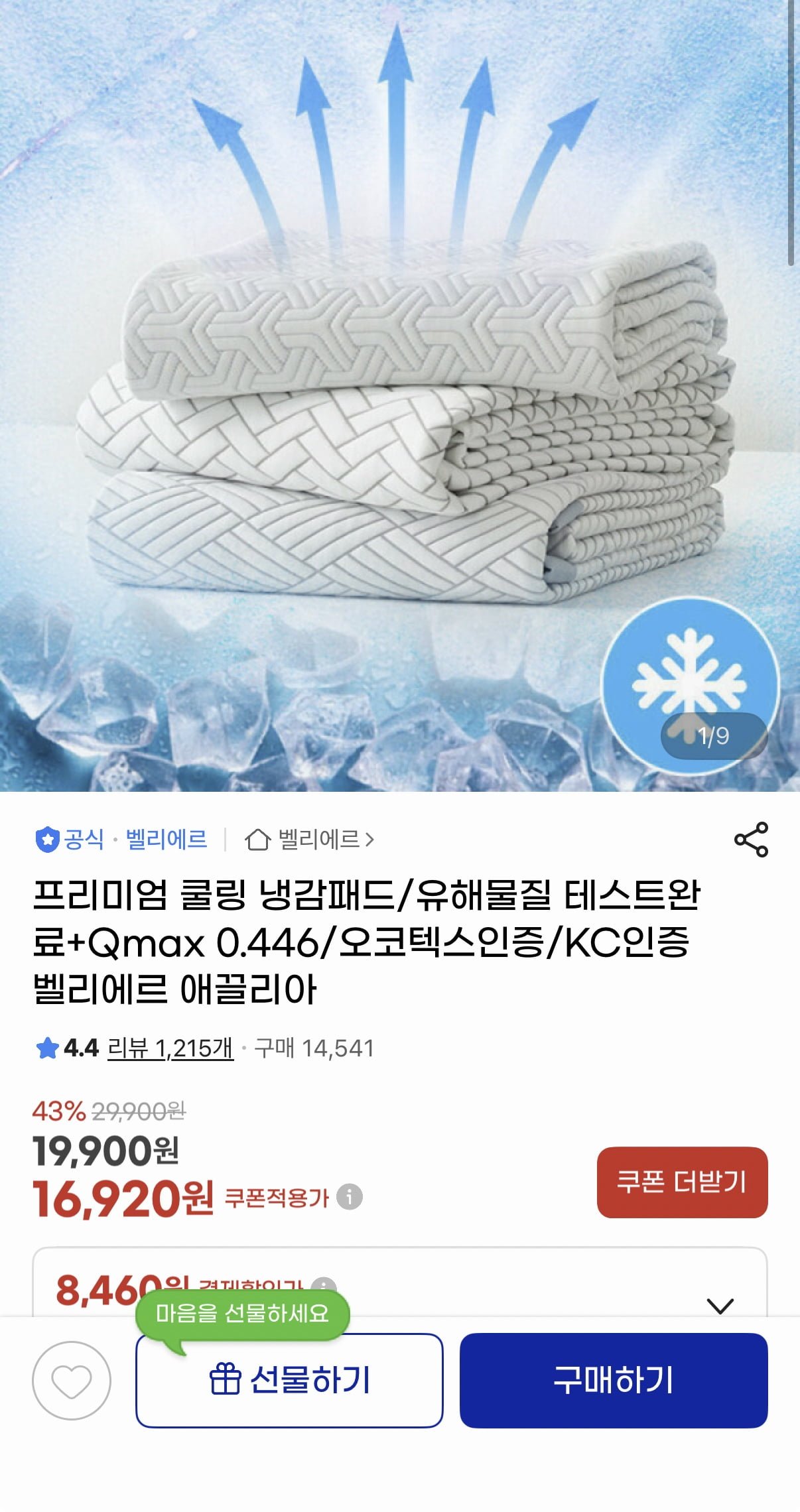 [지마켓]벨리에르 애끌리아 프리미엄 쿨링 냉감패드 1장 (16,920원/무료)