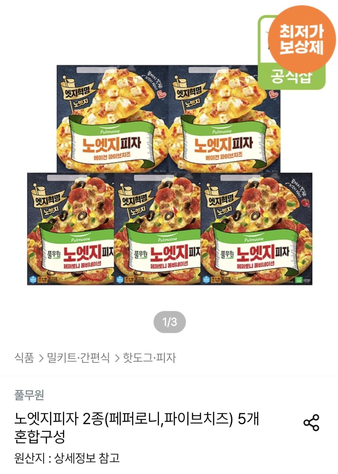 [오늘의집]노엣지피자 2종(페퍼로니,파이브치즈) 5개 혼합구성 (25,702원/무료) - 딜모아