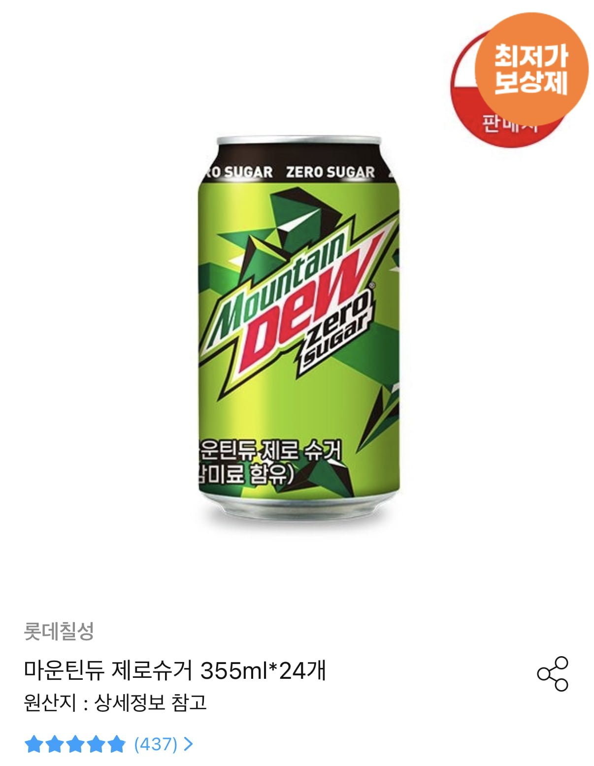 [오늘의집]롯데칠성 마운틴듀 제로슈거 355ml 24캔 (13,857원/무료) - 딜모아