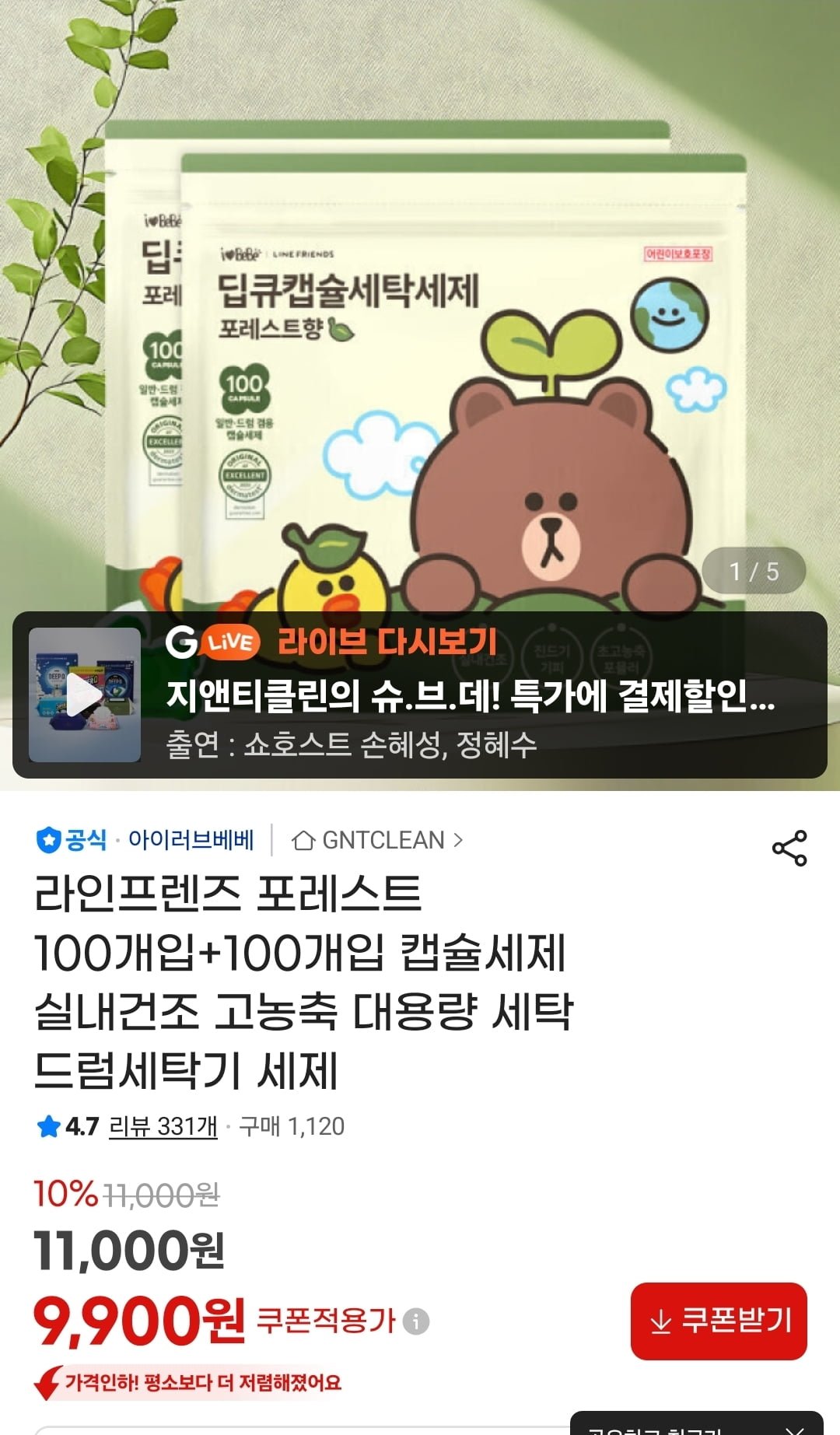 [지마켓]아이러브베베 라인프렌즈 포레스트 캡슐세제 200개입 (9,900원/무료) - 딜모아
