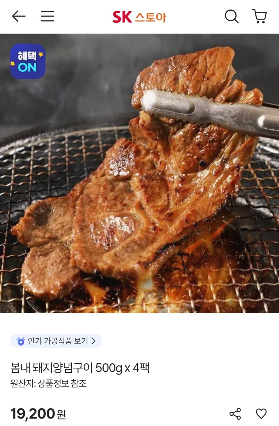 [SK스토아]봄내 돼지양념구이 500g 4팩 (19,200원/무료)