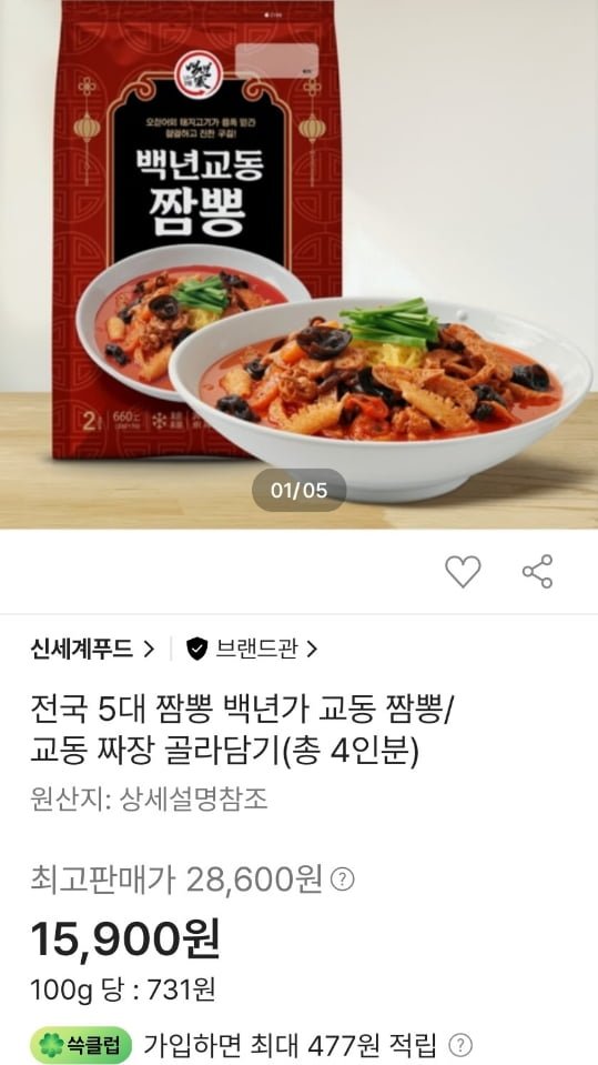 [ssg]신세계푸드 전국 5대 짬뽕 백년가 교동 짬뽕/짜장 골라담기(4인분) (15,900원/무료) - 딜모아