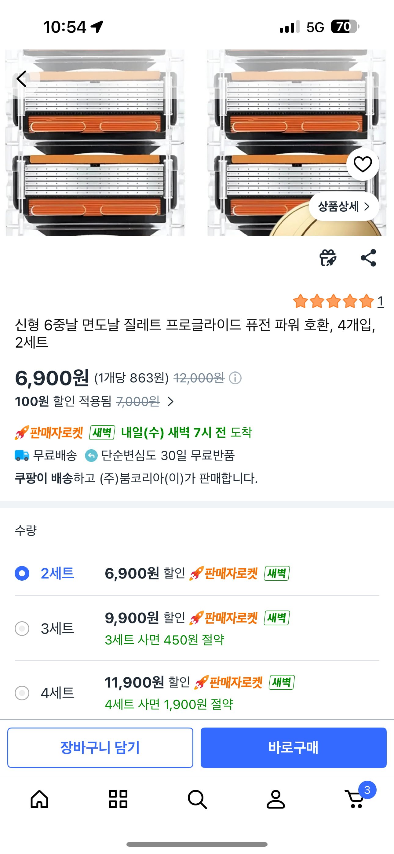 [쿠팡]신형 6중날 면도날 질레트 프로글라이드 퓨전 파워 호환, 4개입, 2세트 (6,900원~/무료) - 딜모아