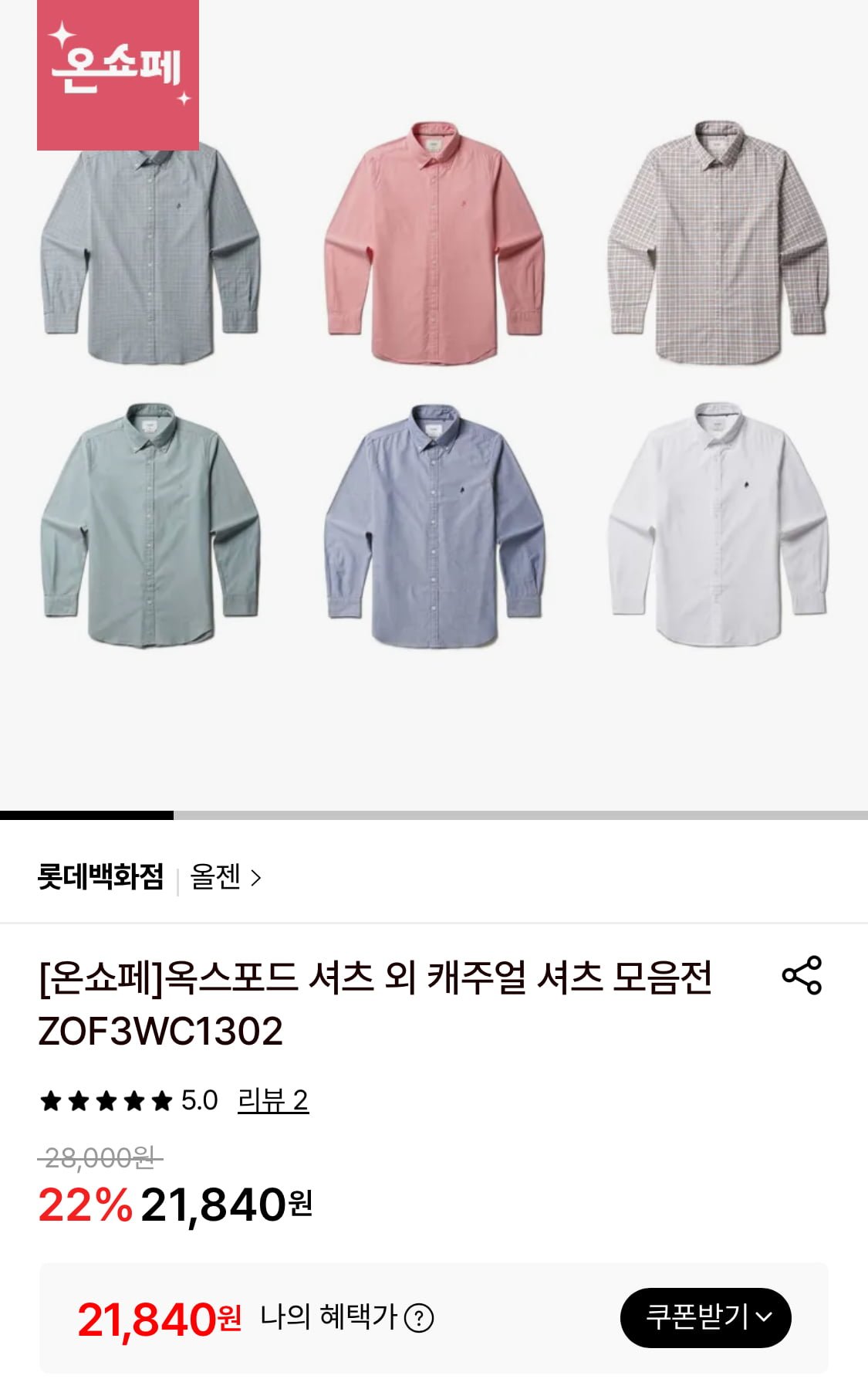 [롯데온]올젠 옥스포드 셔츠 외 (21,840원/무료)