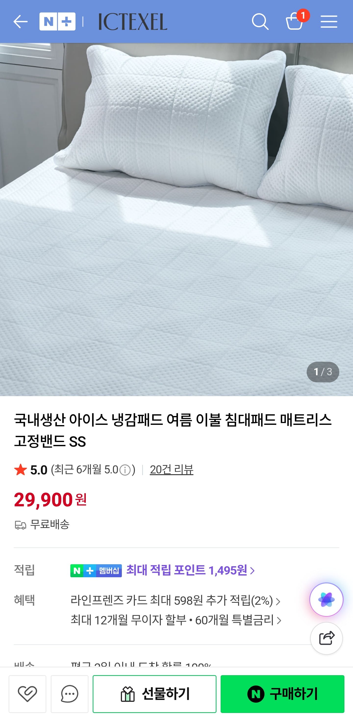 [네이버]국내생산 여름 이불 침대패드 ( 19,900원/무료)