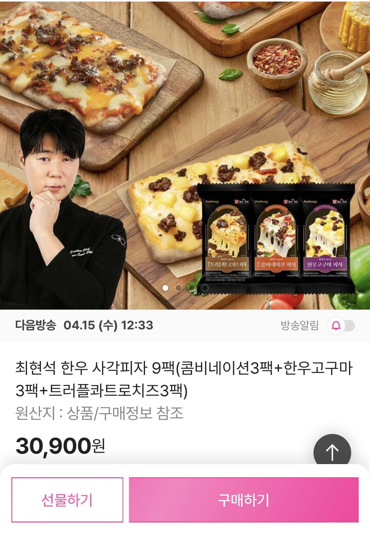 [신세계쇼핑]한우 사각피자 9팩(콤비/한우고구마/트러플콰트로치즈)(30,900원/무배)