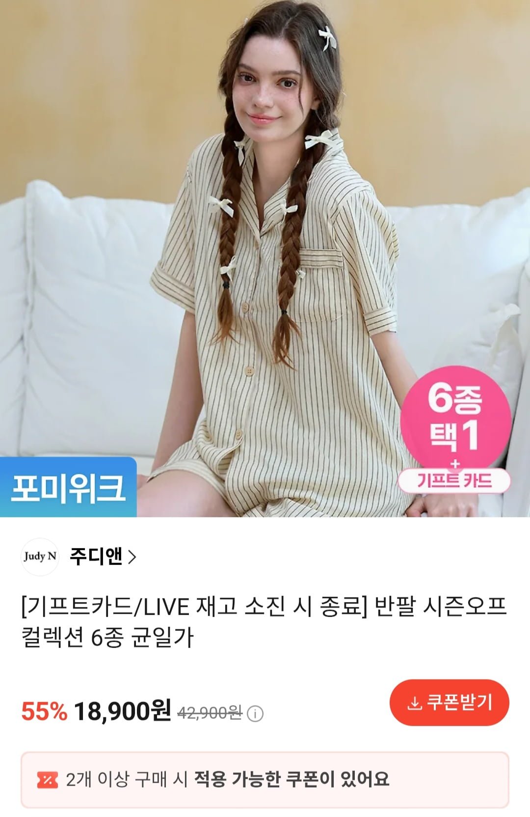 [카카오톡]주디앤 반팔 파자마 6종 (18,900원~/무료)