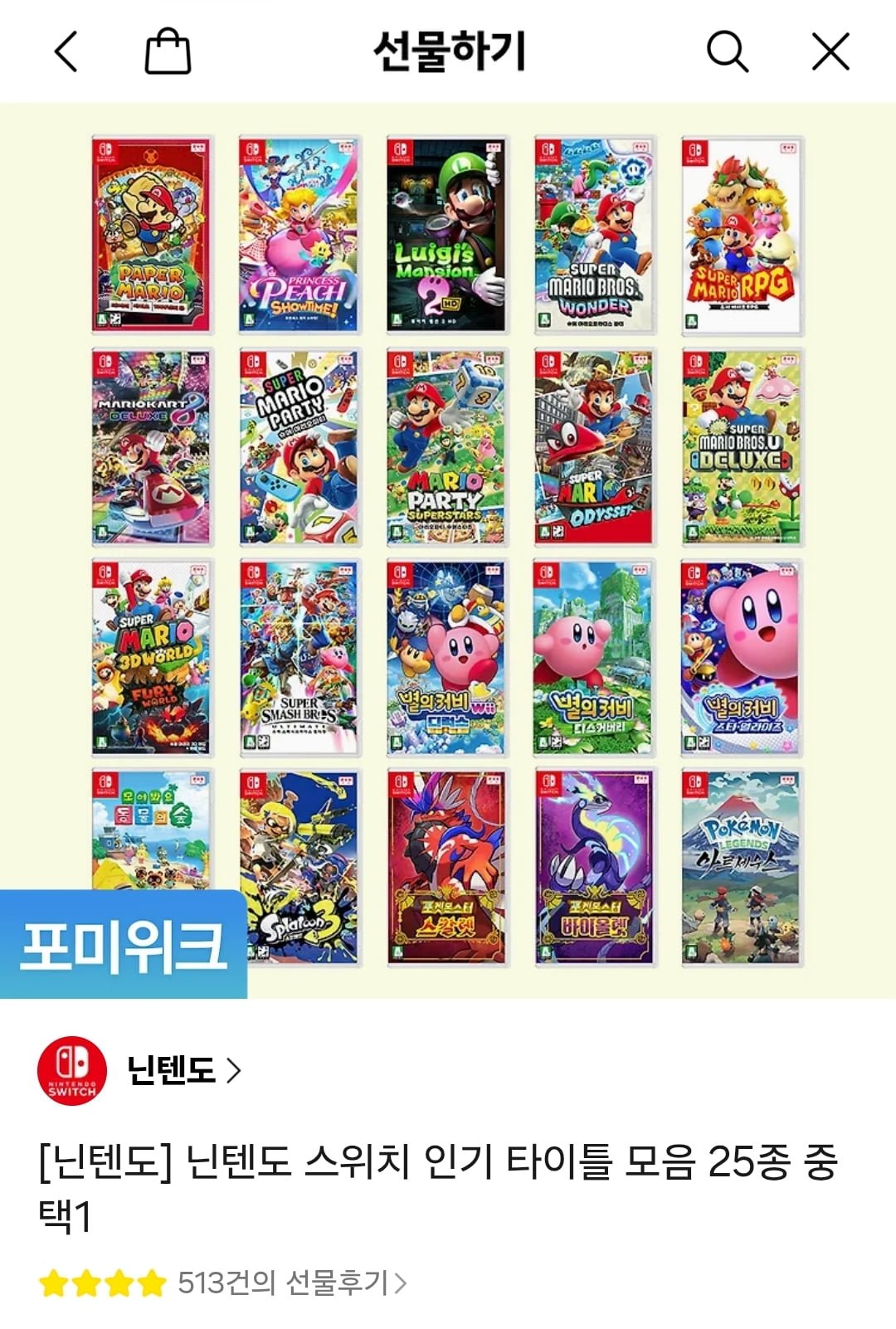 [카카오]닌텐도 스위치 인기 타이틀 모음 25종 중 택1 (45,720원/무료배송)