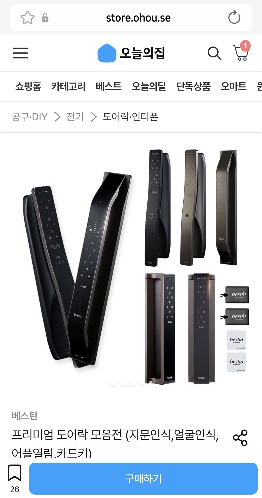 [오늘의집]오늘 하루만 베스틴 디지털 도어락 최저가 (322,080원부터/무료) - 딜모아