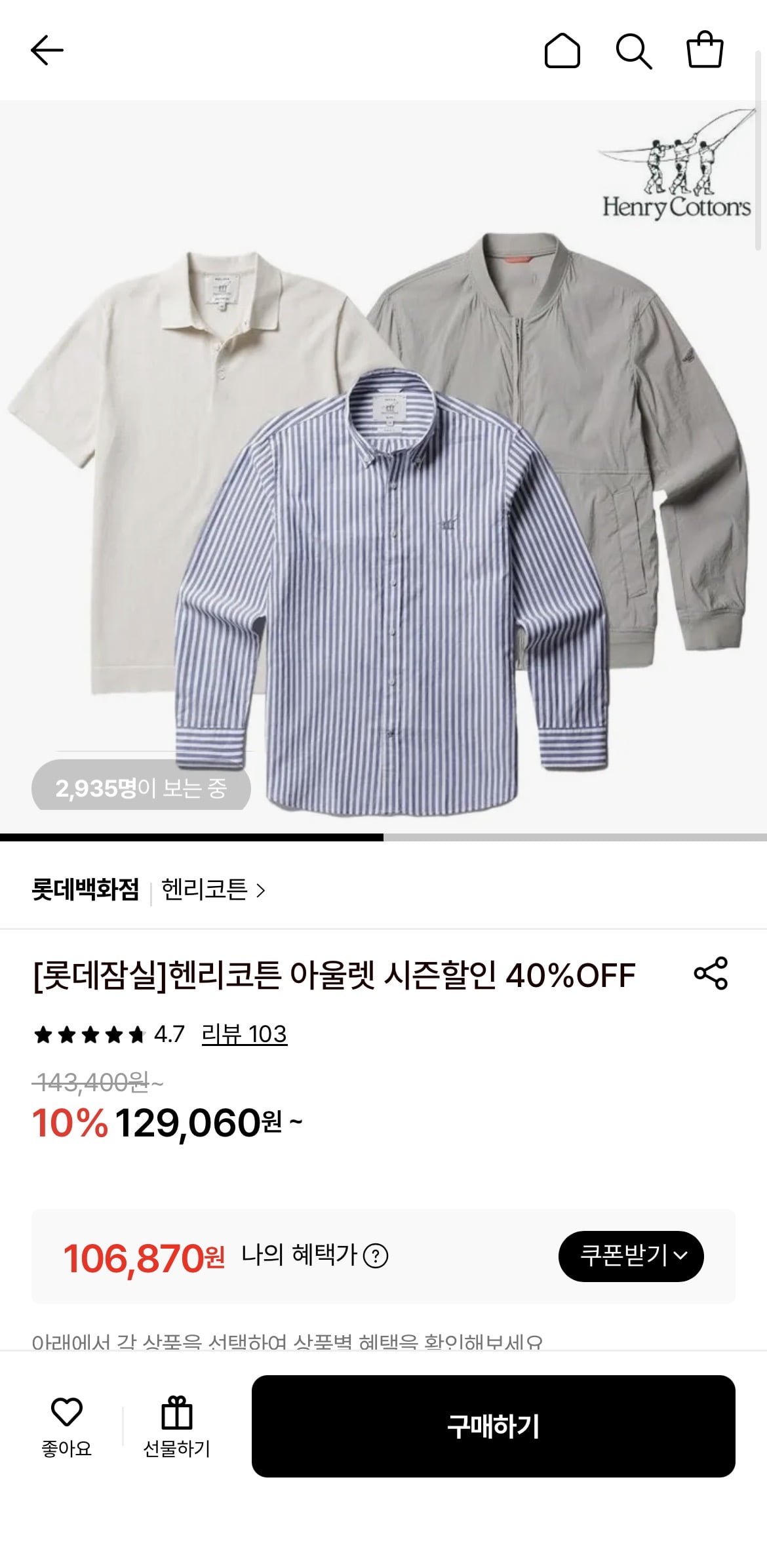 [롯데온]헨리코튼 크로셰 패턴 리플리 니트 (106,870원/무료)