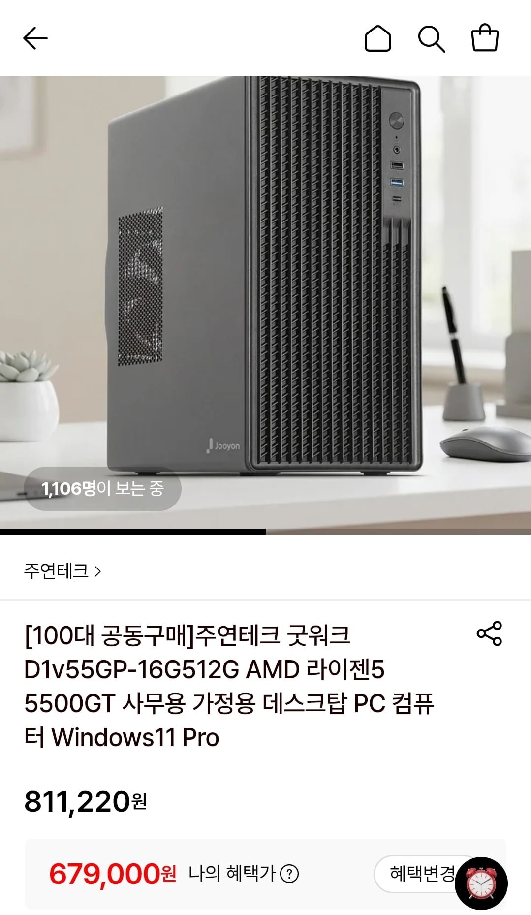[롯데온]주연테크 굿워크 D1v55GP AMD 라이젠5 데스크탑 (679,000원/무료)