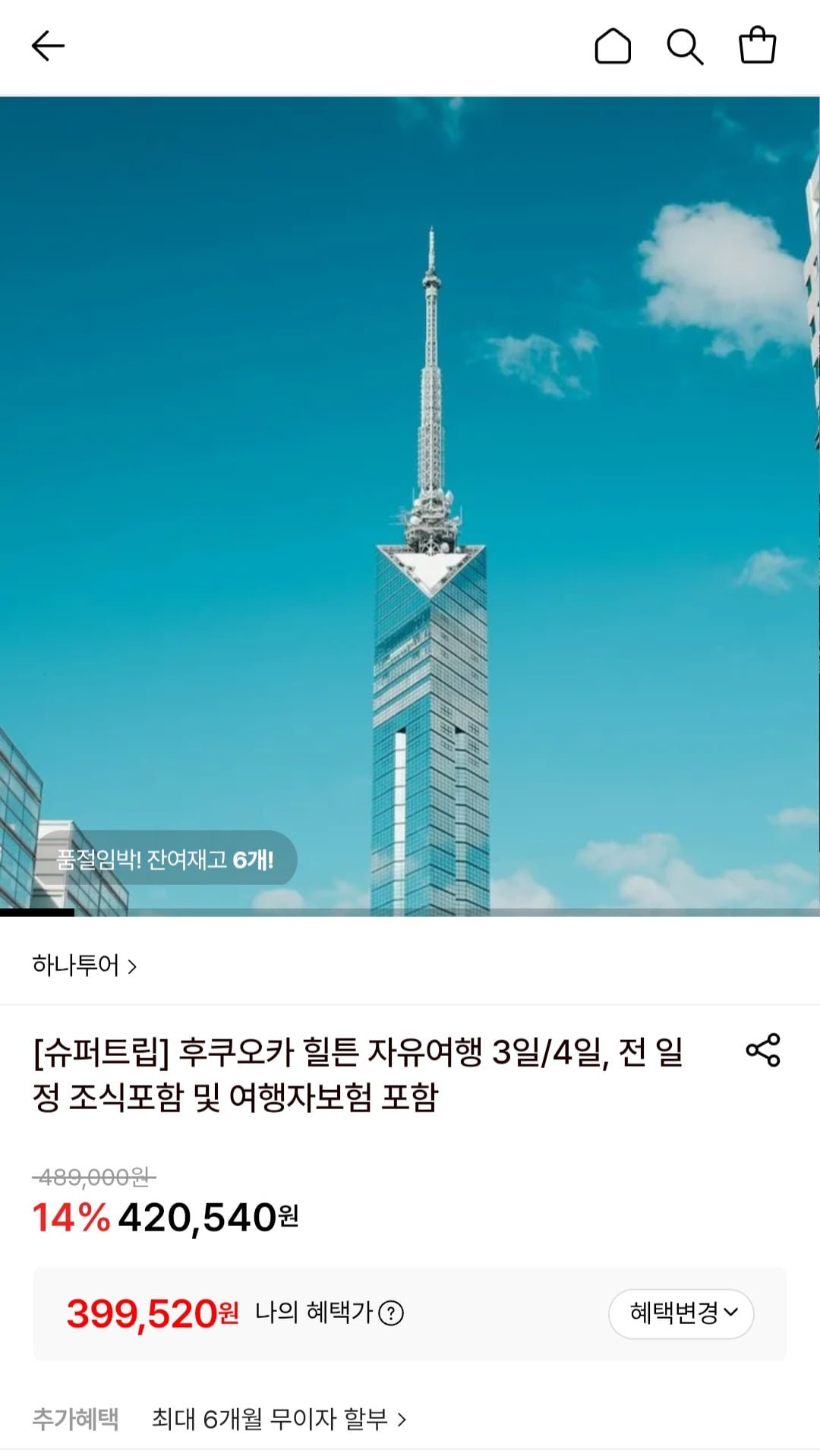 [롯데온]후쿠오카 힐튼 자유여행 3일/4일 조식포함 (399,520원/무료)