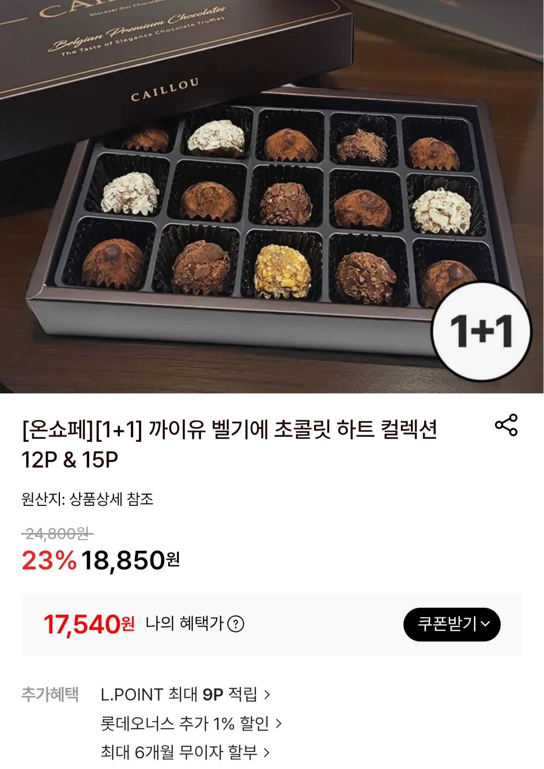 [롯데온]까이유 벨기에 초콜릿 하트 컬렉션 15P 2개 (17,540원/무료) - 딜모아