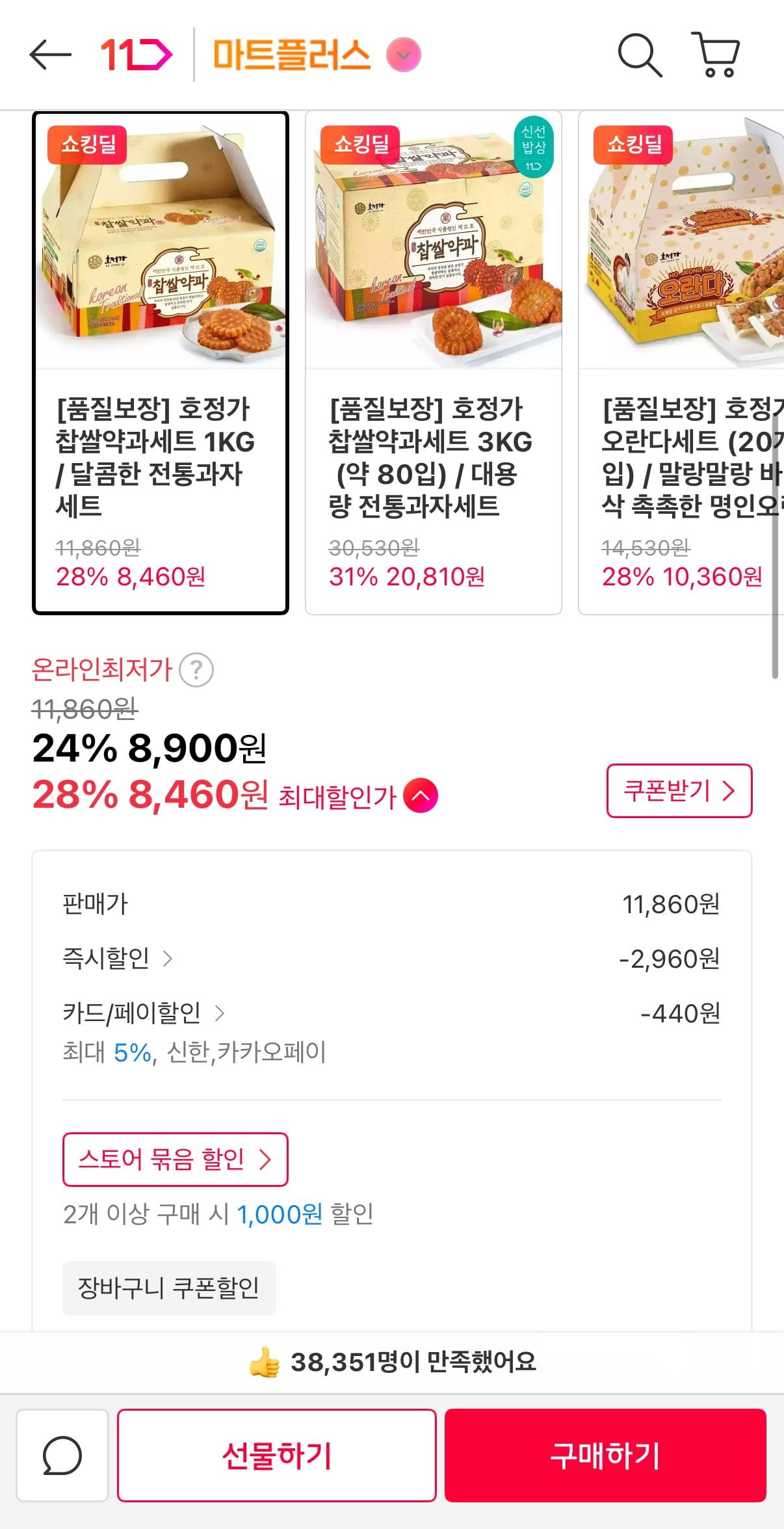 [11번가]호정가 찹쌀약과세트 1KG (8,460원/무료) - 딜모아