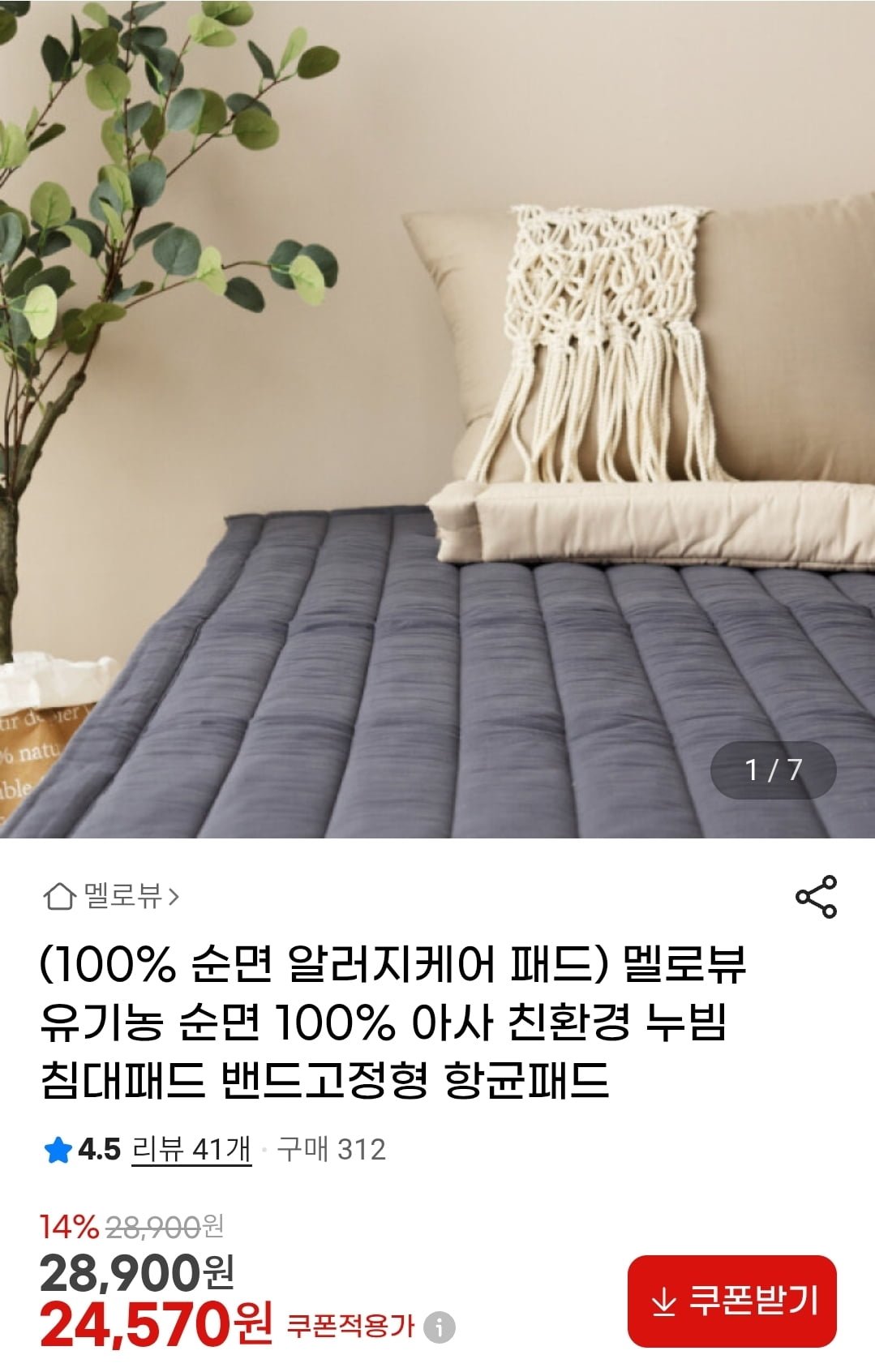 [지마켓]유기농 순면 100% 아사 친환경 누빔 침대패드(24,570원/무배)