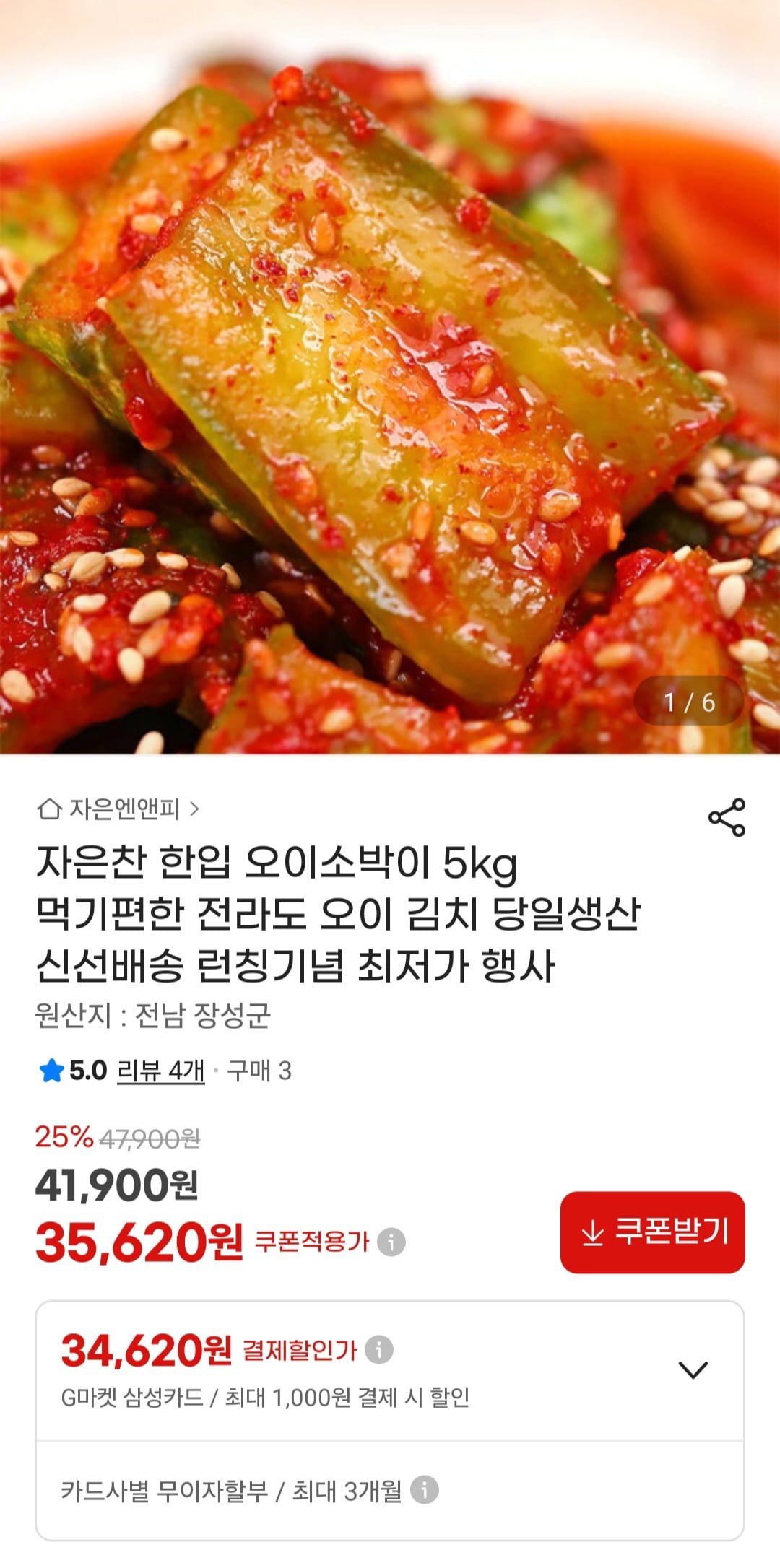 [지마켓]한입 오이소박이 5kg 당일생산 (35,620원/무료)