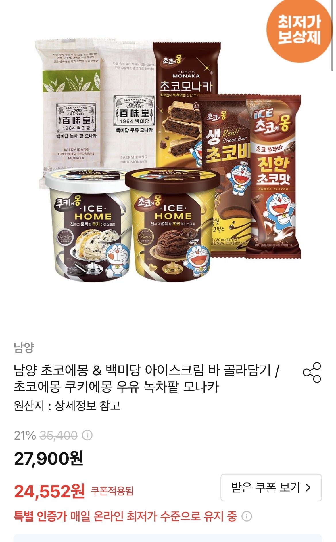 [오늘의집]백미당 초코에몽 아이스크림 골라담기 (22,834원~/무배)