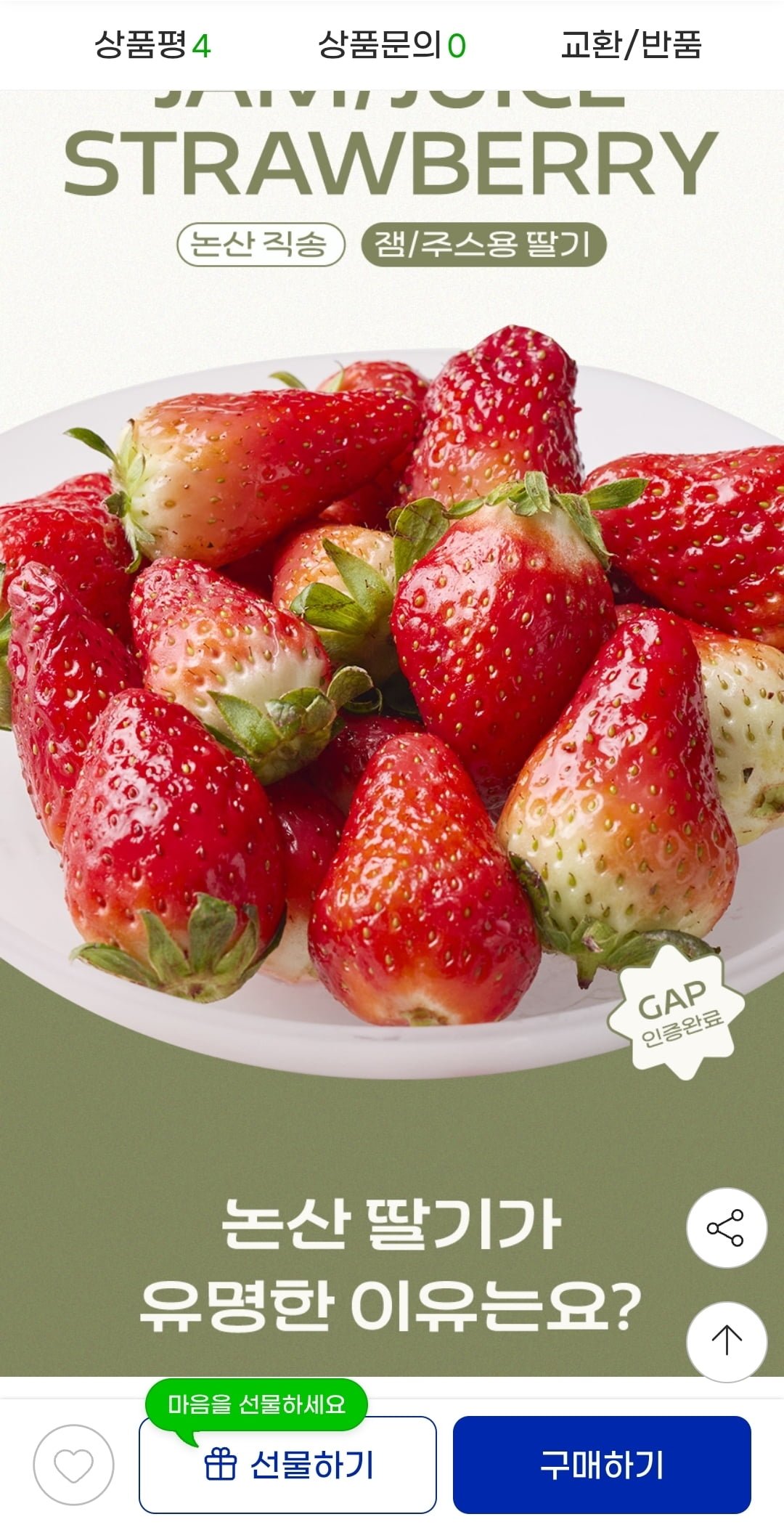[지마켓]논산 잼 쥬스용 딸기 1kg(7,950원/무배)