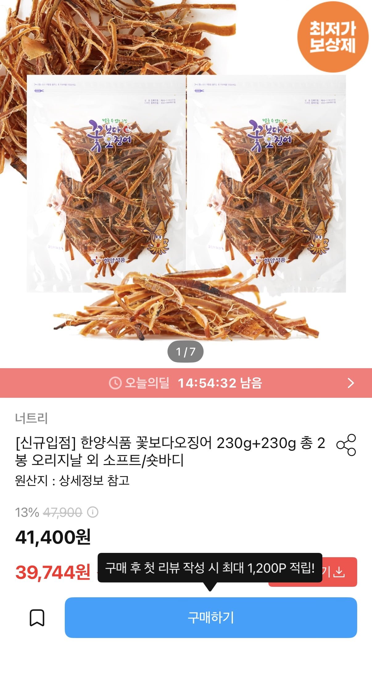 [오늘의집]한양식품 꽃보다오징어 230g 2봉 오리지널소프트 1선택 (33,970원/무료)