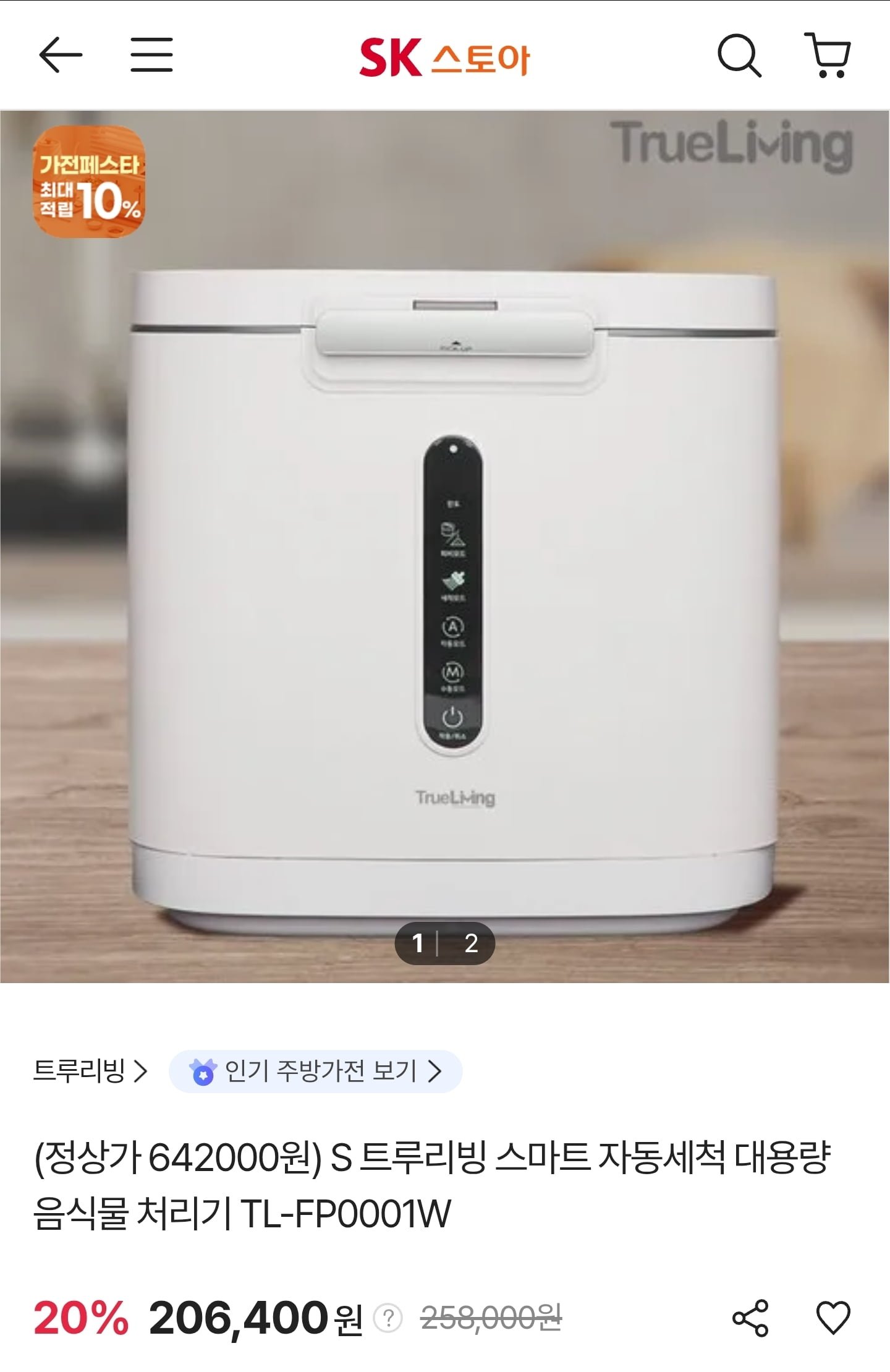 [SK스토아]트루리빙 스마트 음식물 처리기 TL-FP0001W (206,400원/무료)