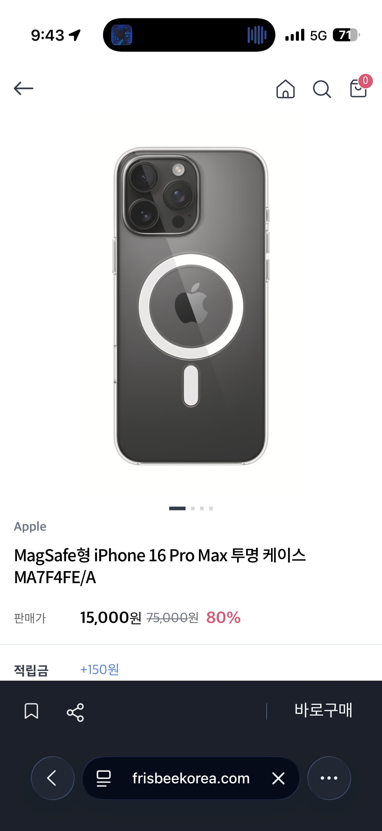 [프리스비]iPhone 16 프로맥스 정품 케이스 (15,000원/2,500원) - 딜모아