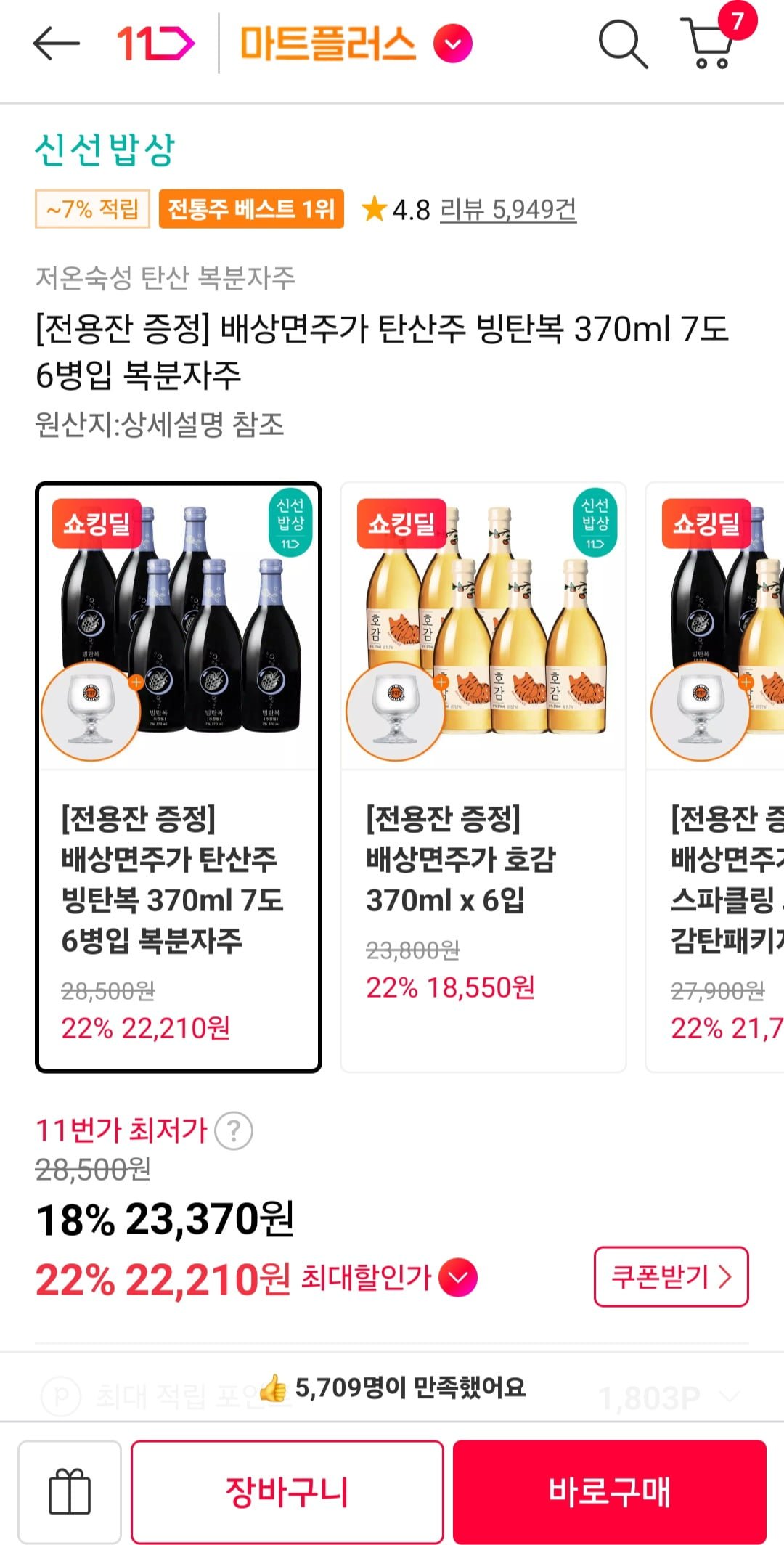 [11번가]빙탄복 370ml 7도 6병입 복분자주 + (옵션)전용잔 증정 (22,210원/무료배송) - 딜모아