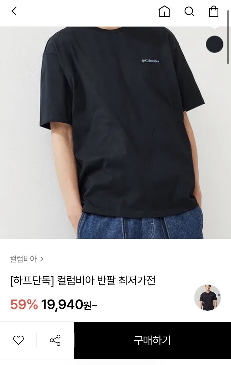[하프클럽]컬럼비아 익스플로워 캐넌 백 반팔티셔츠 (19,940원/3,000원)