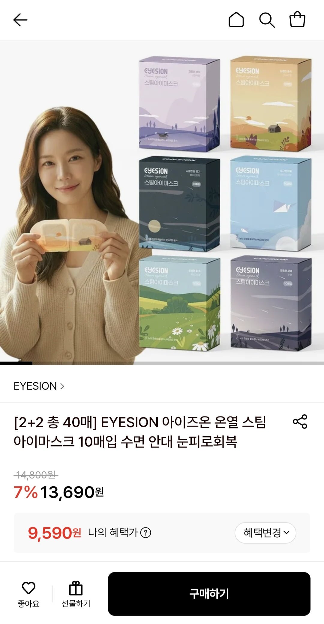 [롯데온]EYESION 아이즈온 스팀 아이마스크 40매(9,590원/무료)