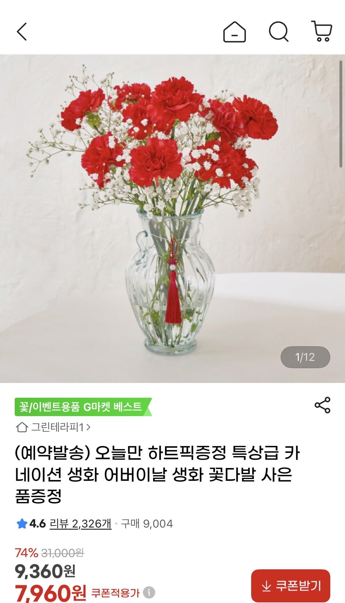[g마켓]특상급 카네이션 생화 5송이 (7,960원/무료)