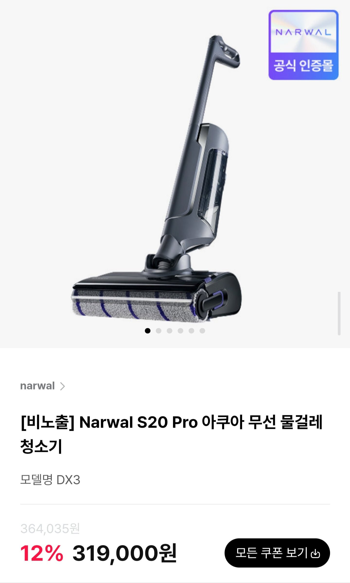 [하이마트몰]나르왈 S20 Pro 아쿠아 무선 물걸레 청소기 (319,000원/무료)