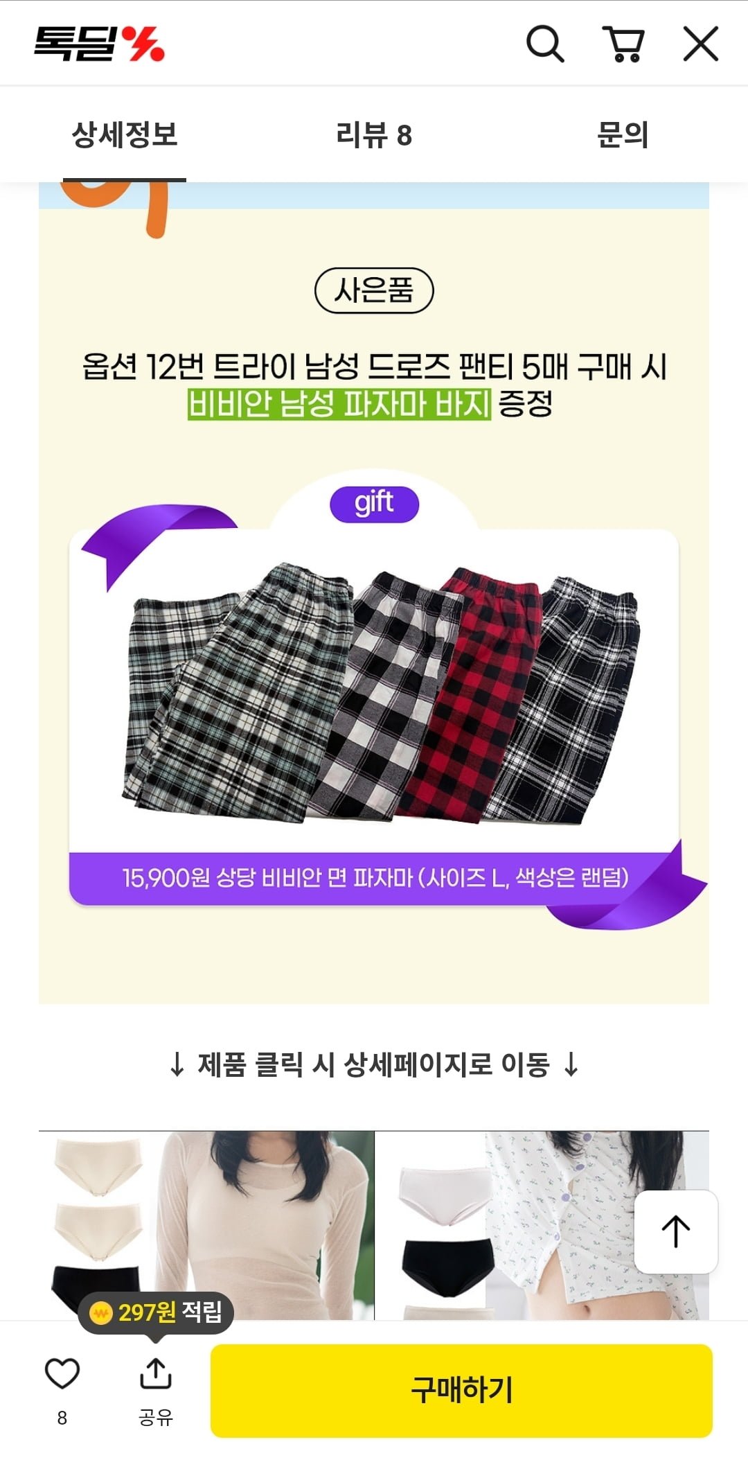 [카카오]남성 TRY 드로즈 팬티 5장+파자마 바지(18,900원/무배)