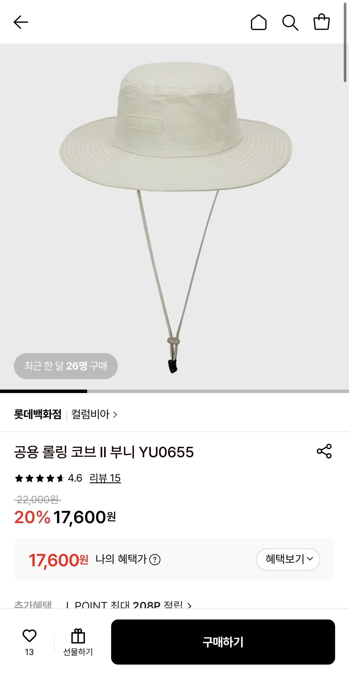 [롯데온]컬럼비아 공용 롤링 코브 II 부니 (17,600원/3,000원)