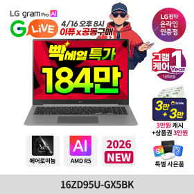 [G마켓]금일 20시부터 G라이브 LG그램 프로 16ZD95U-GX5BK 184만/무료 - 딜모아