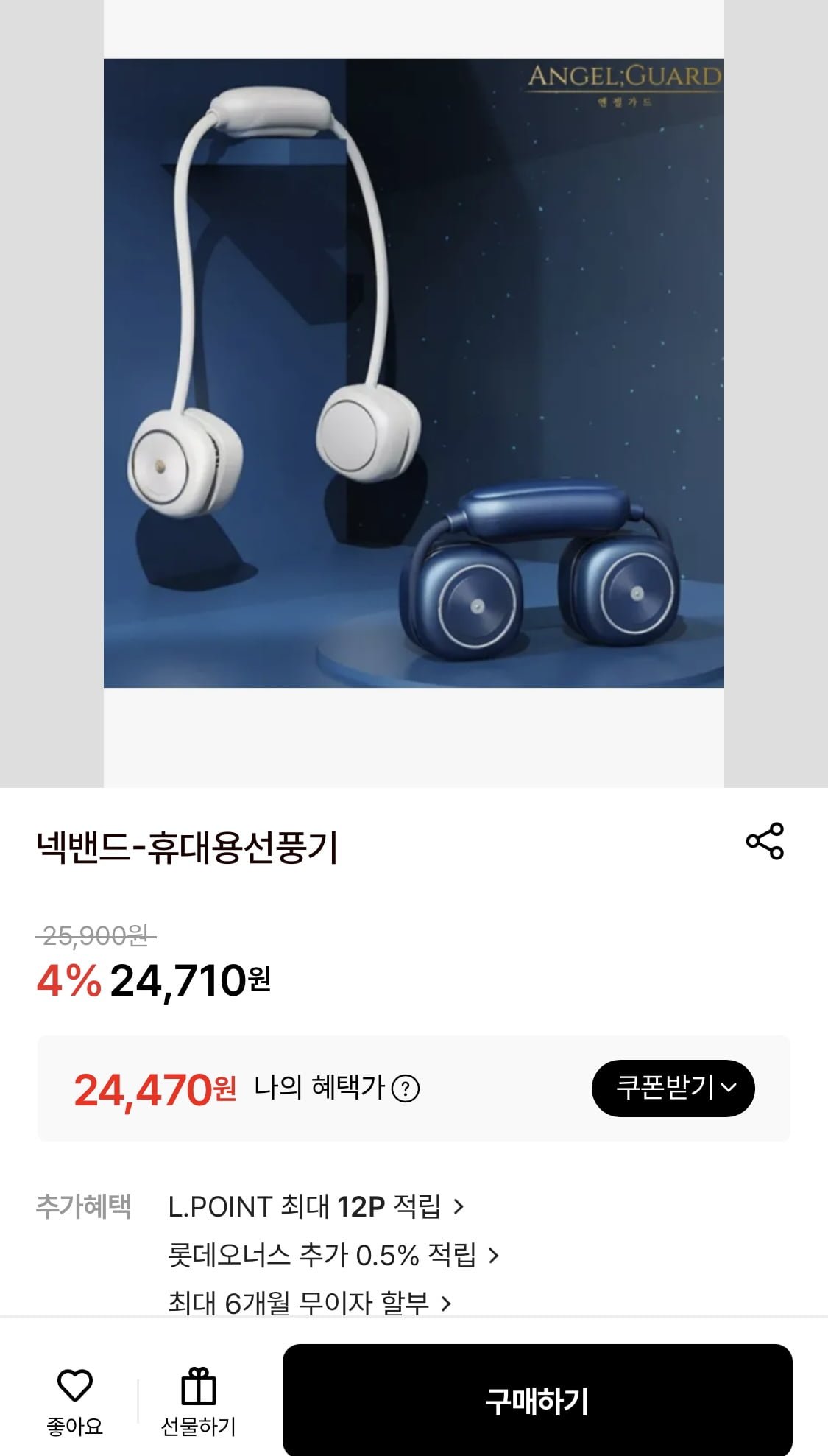 [롯데온]넥밴드 휴대용선풍기 24,470원 무배