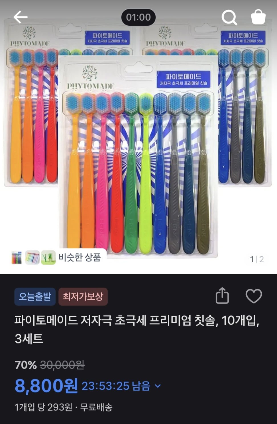 [토스] 저자극 초극세 프리미엄 칫솔 10개입 3세트 (8,800원/무료)