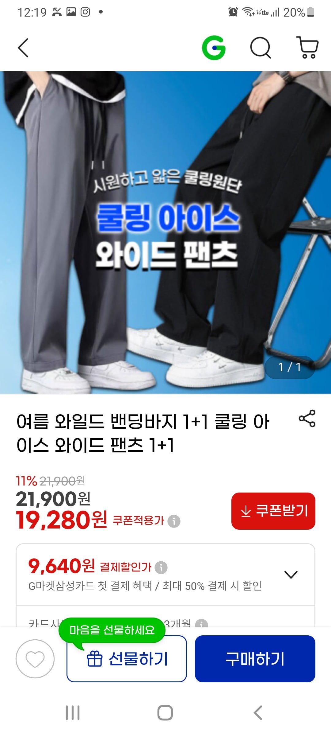 [G마켓]와일드 밴딩바지 1+1 쿨링 아이스 36까지 (19,280원/무배)