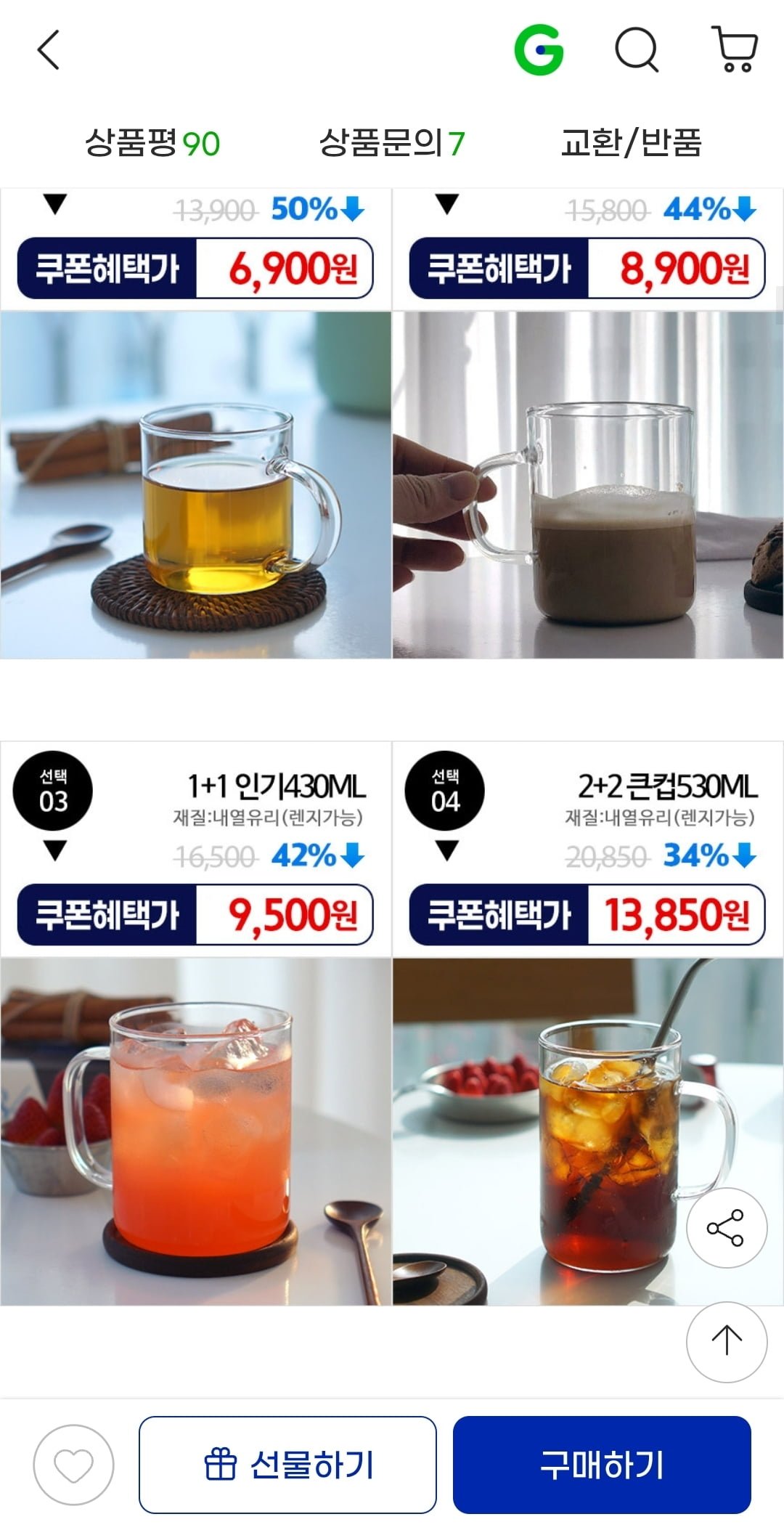 [지마켓]내열유리컵1+1 190ml 전자렌지O(6,720원~/무배)