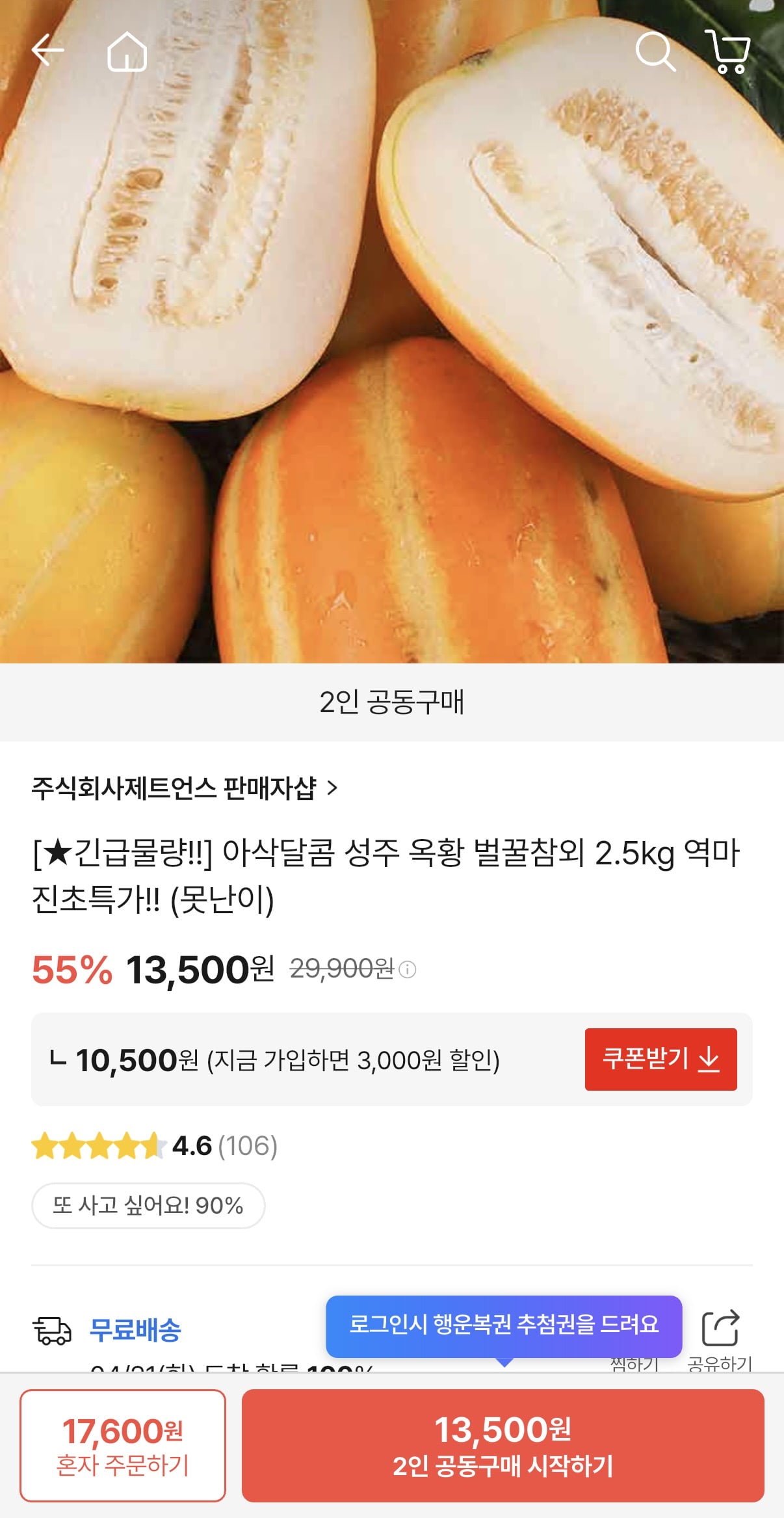 [할인중독]성주 옥황 벌꿀참외 2.5kg (13,500원/무료)