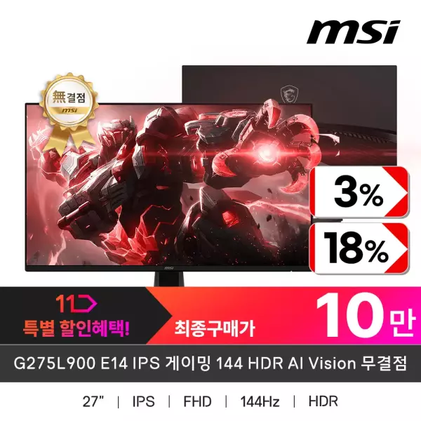 [11번가]MSI G275L900 E14 IPS 27인치 게이밍모니터 (106,610/무료) - 딜모아
