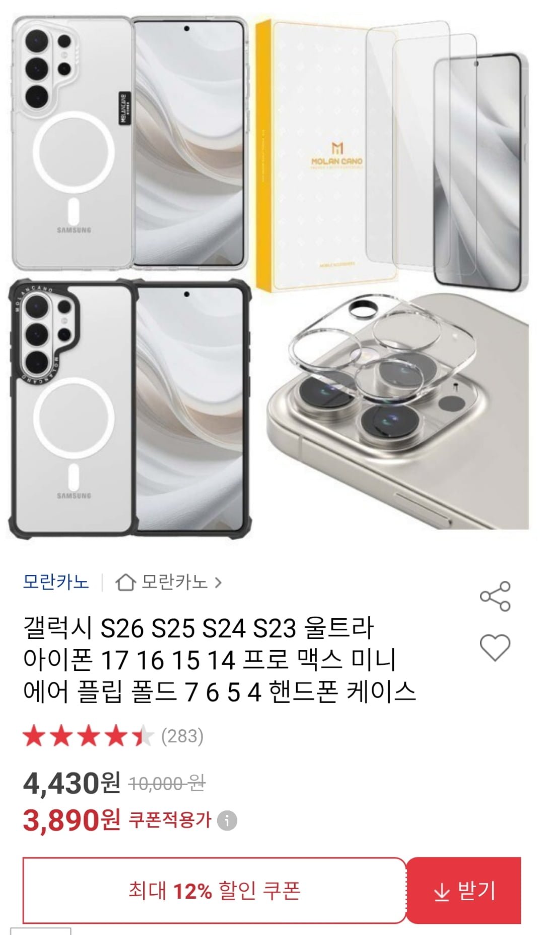 [옥션]핸드폰 케이스 3개 외 다양 (3,890원 / 무료)