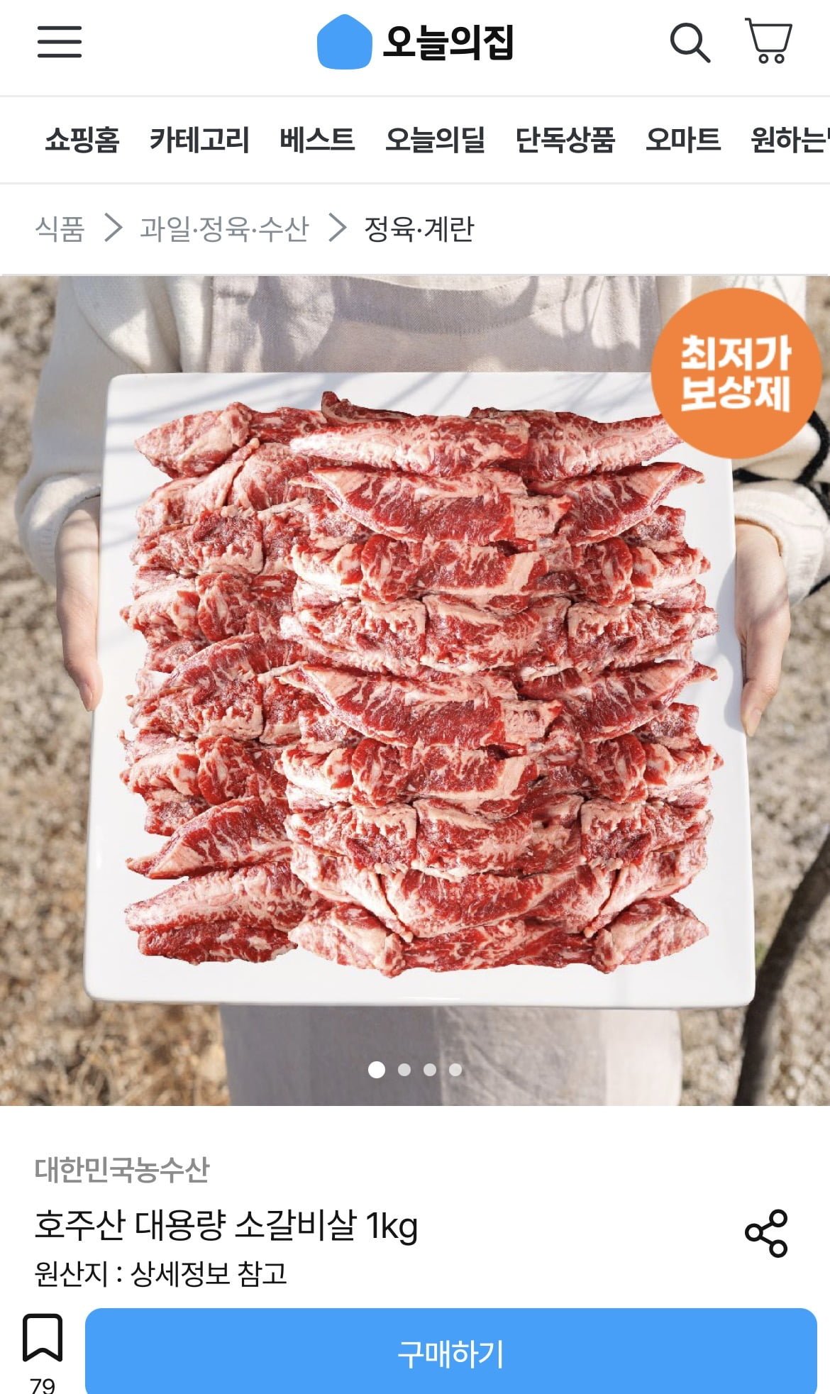 [오늘의집]호주산 대용량 소갈비살 1kg (31,039원/무료) - 딜모아