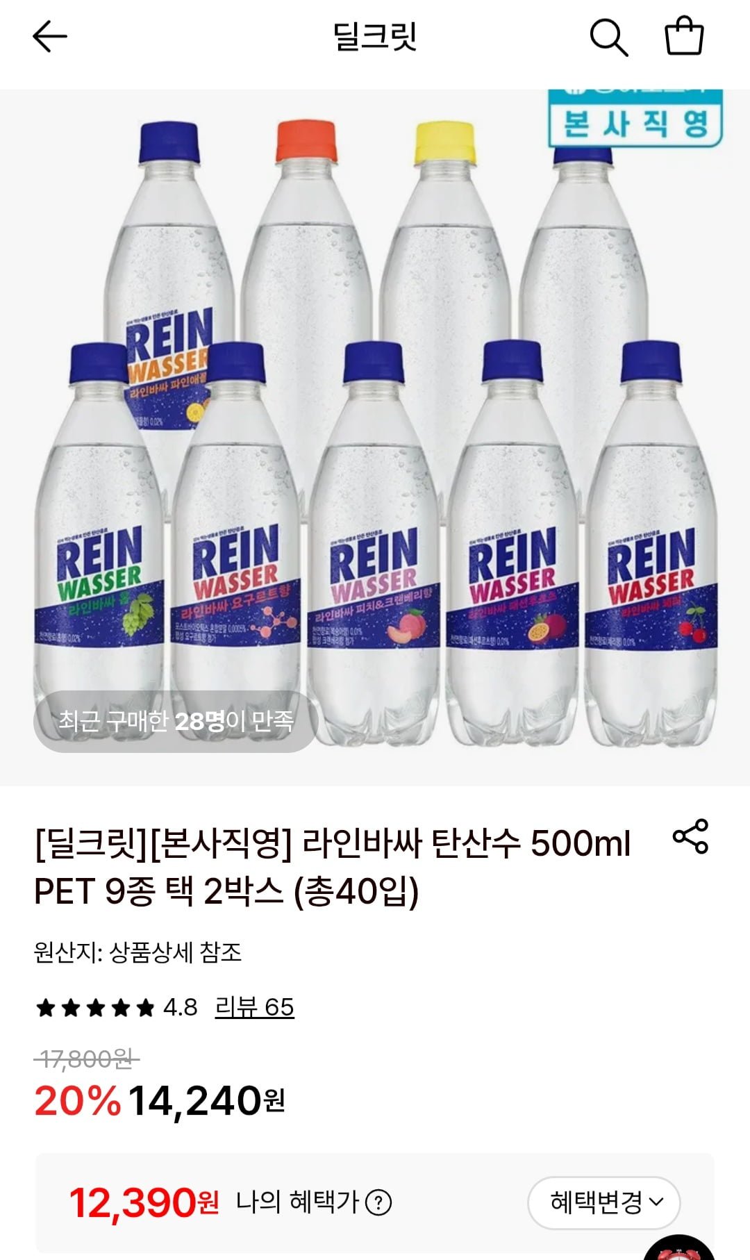 [롯데온]라인바싸 탄산수 500ml 40개 (12,390원/무료) - 딜모아