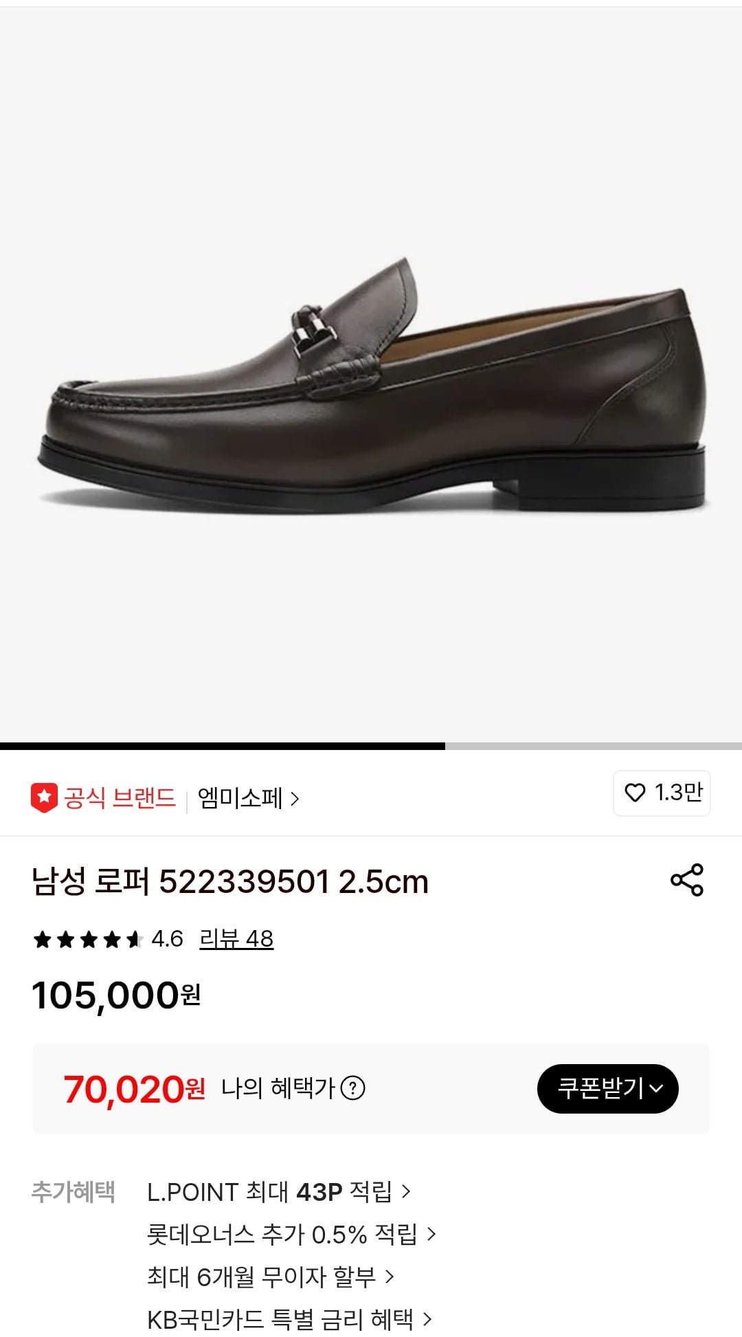 [롯데온]엠미소페 남성 로퍼 522339501 2.5cm (70,020원/무료) - 딜모아