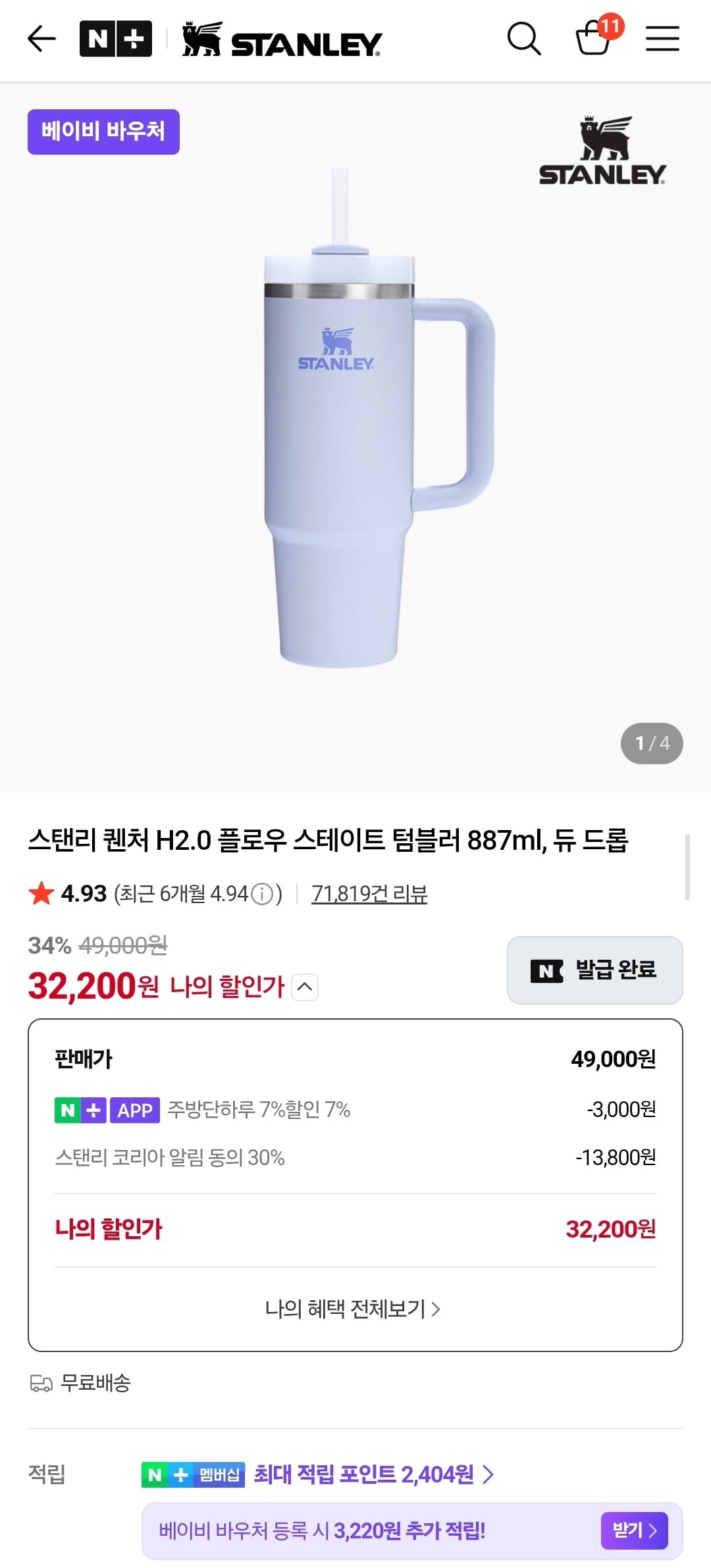 [네이버]스탠리 �처 H2.0 플로우 스테이트 텀블러 887ml (32,200/무료)
