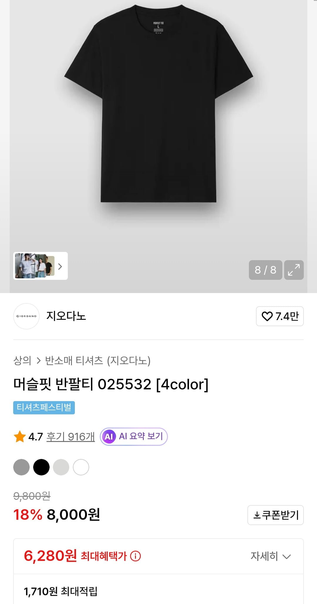 [무신사]지오다노 머슬핏 반팔티 025532 (6,340원/무료)