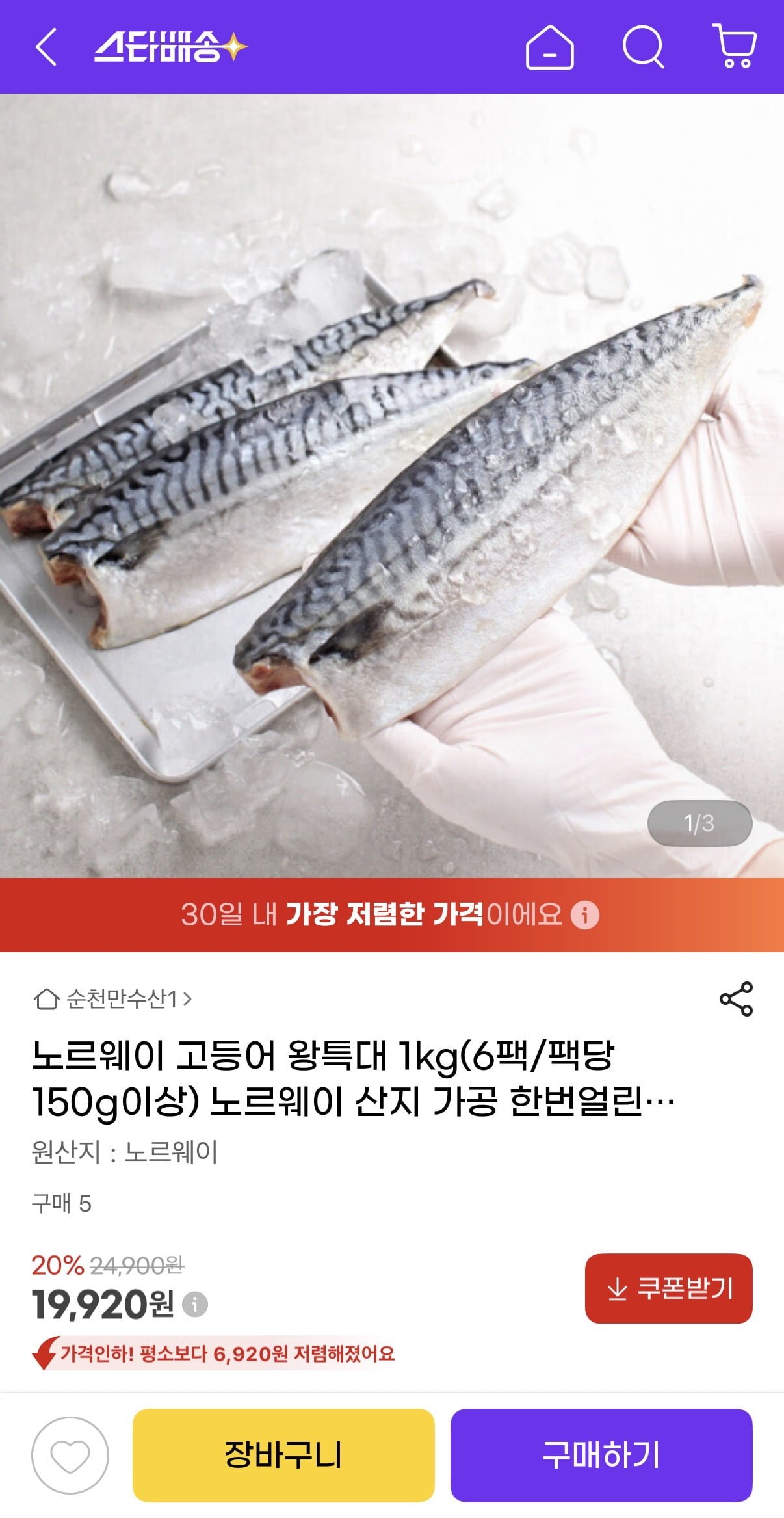 [지마켓]노르웨이 고등어 왕특대 1kg (19,920원/무배) - 딜모아